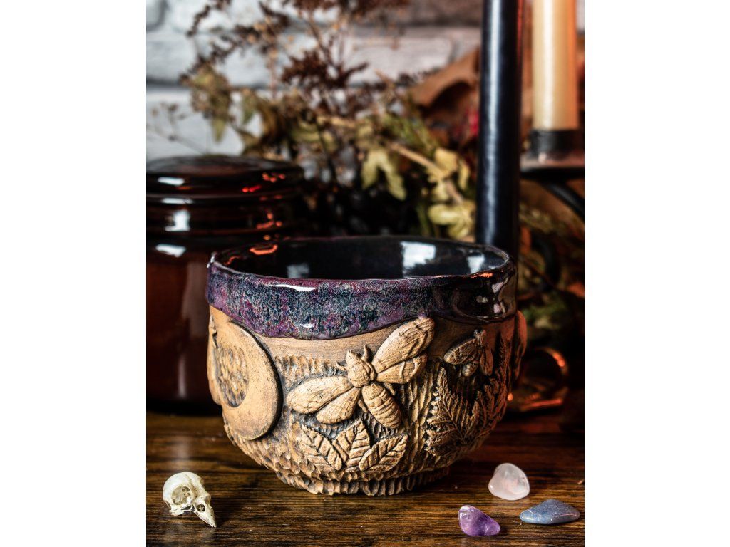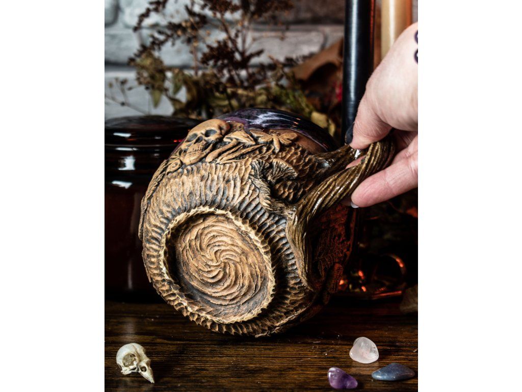 Hrnek s lebkou je mocný artefakt nejen pro období tvých nejtěžších životních změn a pro stínovou práci. Uvař si silný odvar z kořenů, pij z něj, když potřebuješ odvahu pustit kontrolu, a vnímej kosti země, které tě udrží v bezpečí, zatímco tvá mysl překračuje závoj šera.